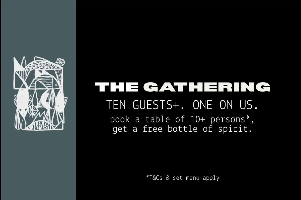 The Gathering is built for 10+ — set menus, plus one bottle of spirit on the house.
