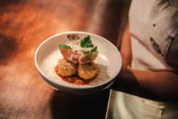 In this one-night-only experience, guests witnessed two creative forces finding harmony through contrast: BUZO’s bold, contemporary Italian-Japanese sensibilities meet Terra Verte’s expressive Italian-Mediterranean flair. Rather than blending cuisines, the chefs orchestrated a conversation – one that unfolds through textures, flavours, and instinct.