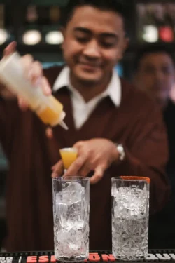 Behind the bar, Mahendra x Krisna (Campari Red Hands finalist 2024) go full throttle with Espolòn Tequila — expect bold pours, fast hands, and cocktails that don’t quit.